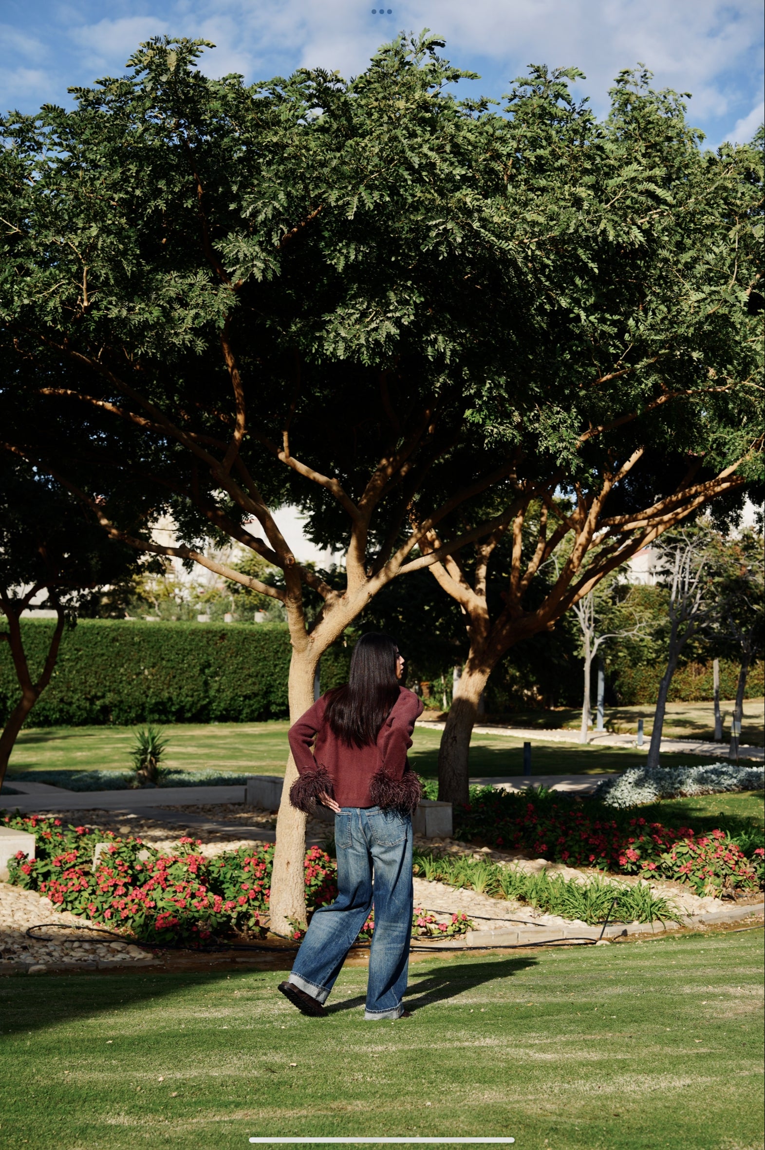 Mohair Knit & Ostrich Feather Cardigan in Chocolate Brown